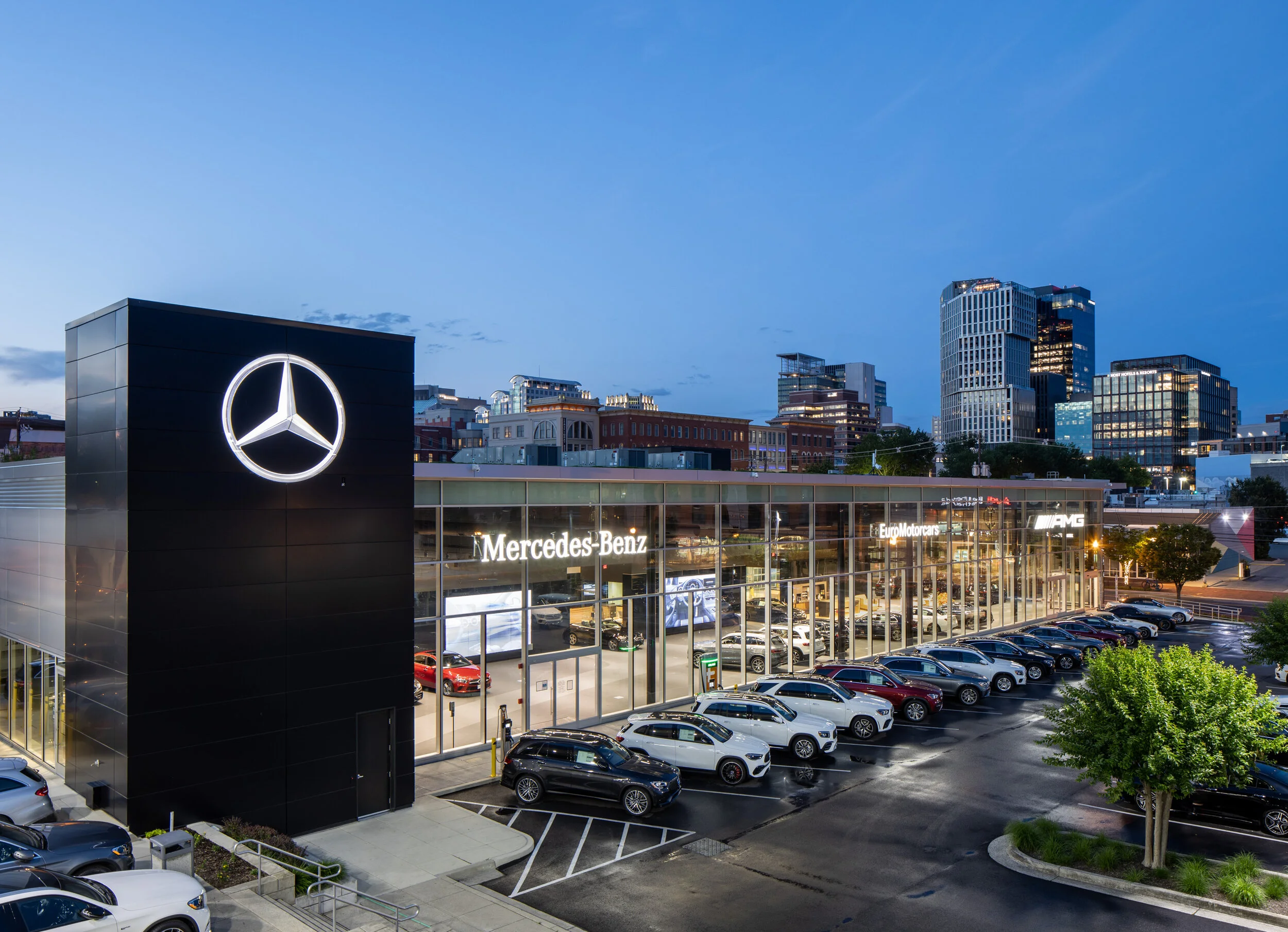 The Bethesda skyline is a great backdrop for this Mercedes dealership.
