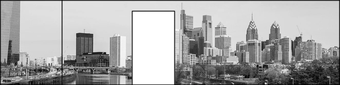 My first challenge was finding an image that would adequately cover the space. It had to show the skyline well, fit an elongated rectangle about 9 feet tall and 35 feet long, and accommodate a gap for the entryway. I combed through my many years of digital archives to select images that would fit these criteria.
