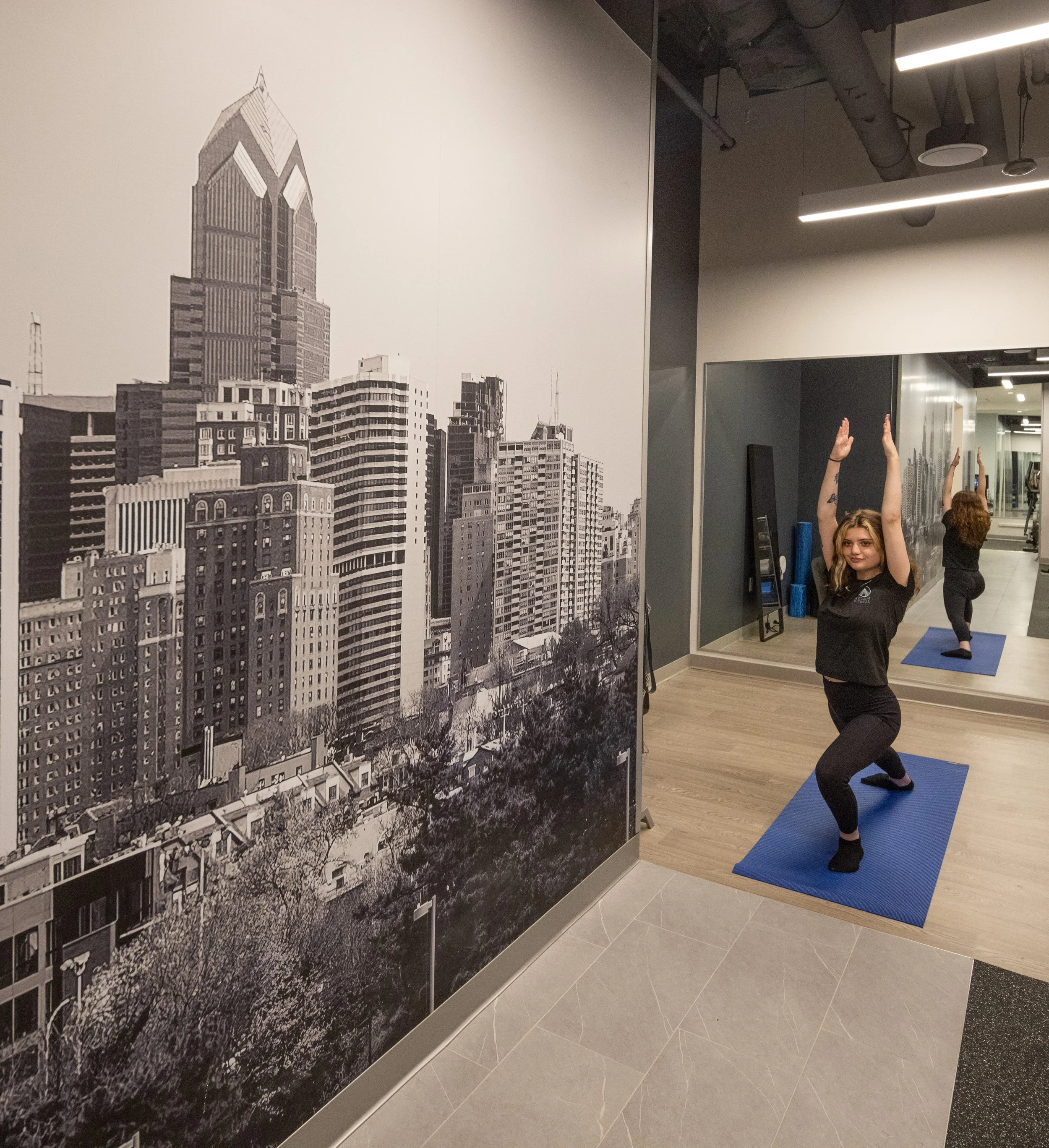 Guests can enjoy a peaceful yoga session that “looks out” onto the beautiful Philadelphia skyline. Namaste!