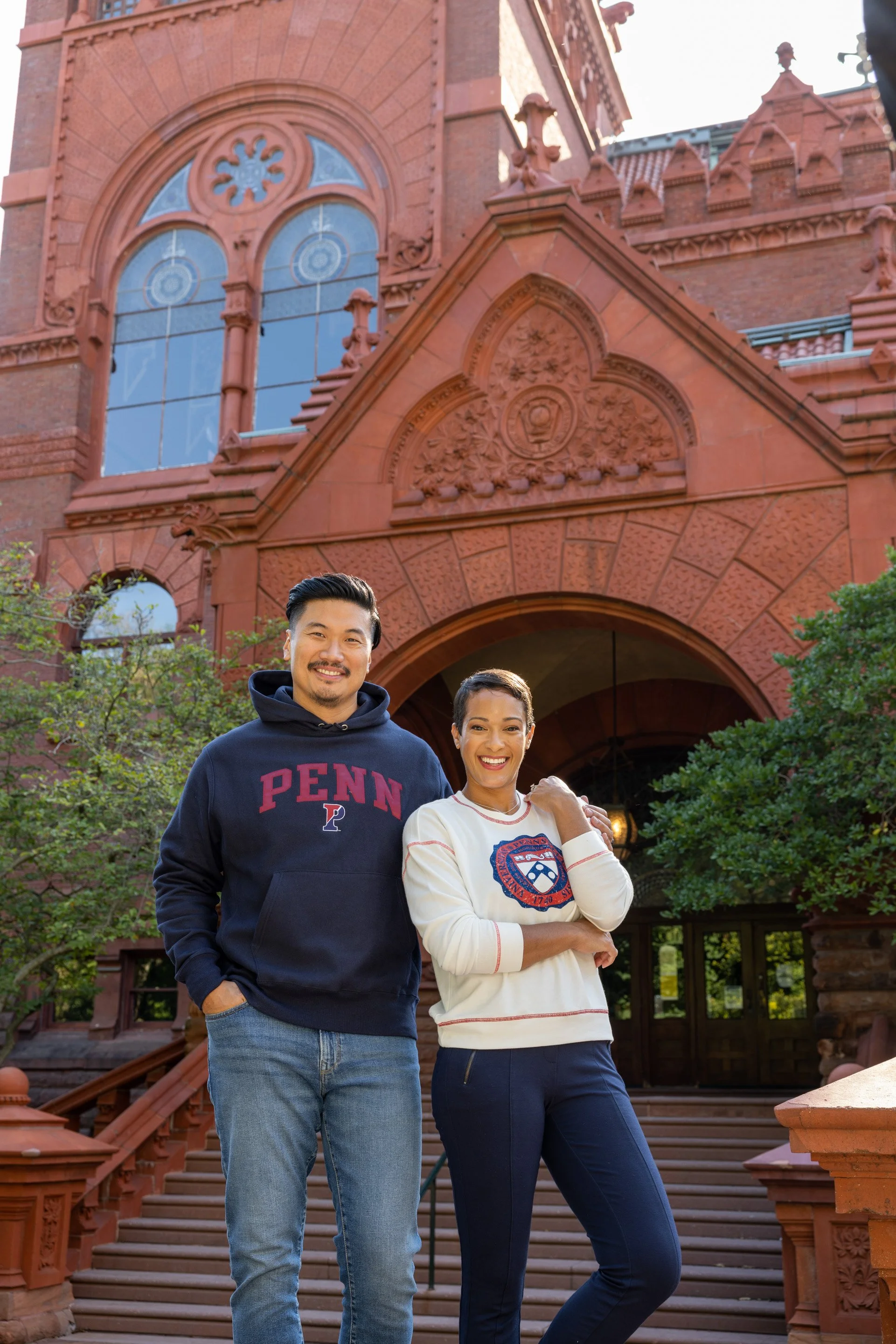 On sunnier days, the Fisher Fine Arts Library provides a great backdrop for all kinds of Penn-related photography, such as models showing off the university bookstore’s latest merch releases. Penn’s signature navy and white really pop against the bright red terra cotta of the library’s exterior.