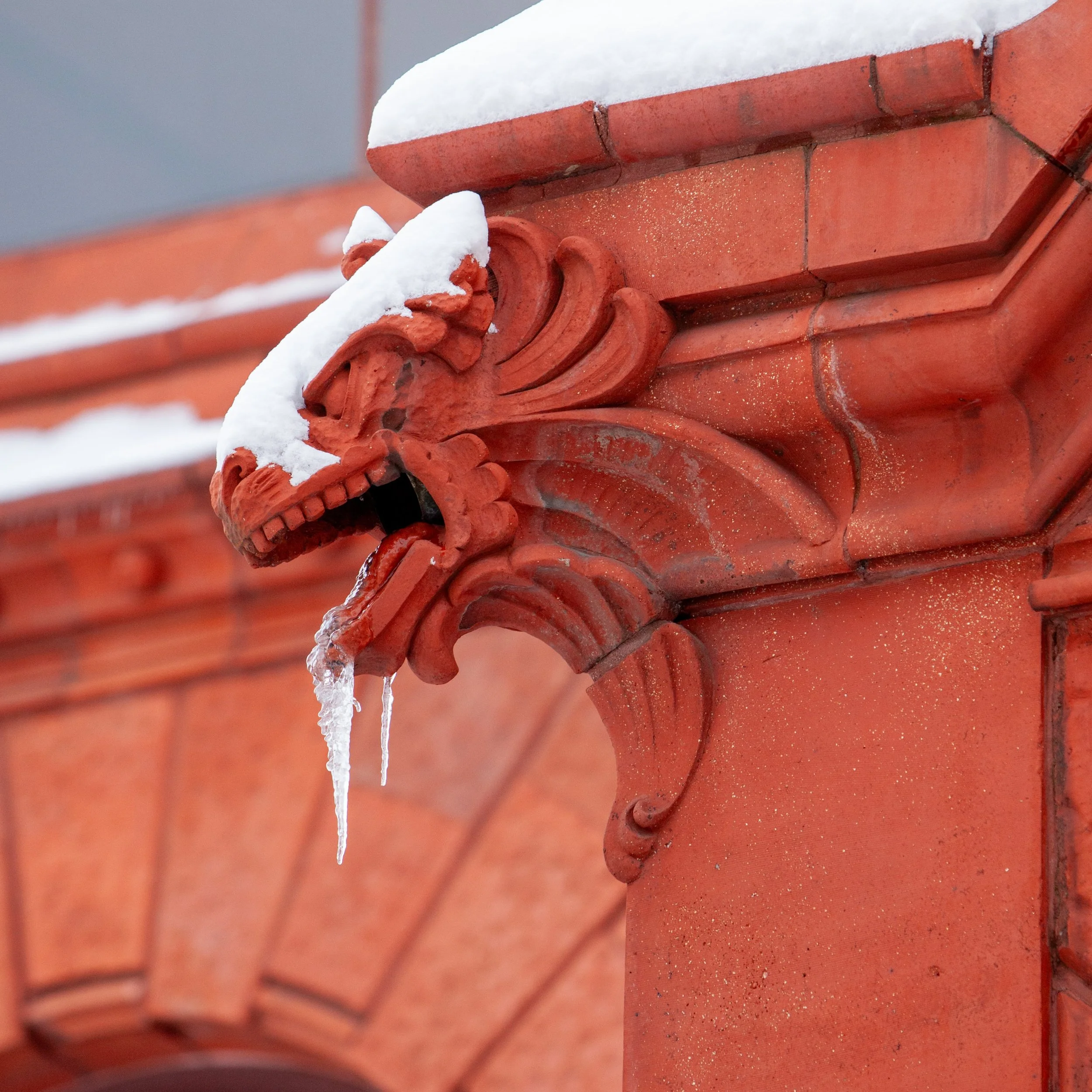 The icicles that hang off the library’s gargoyles in winter bear an endearing resemblance to a happy dog’s drooly grin.