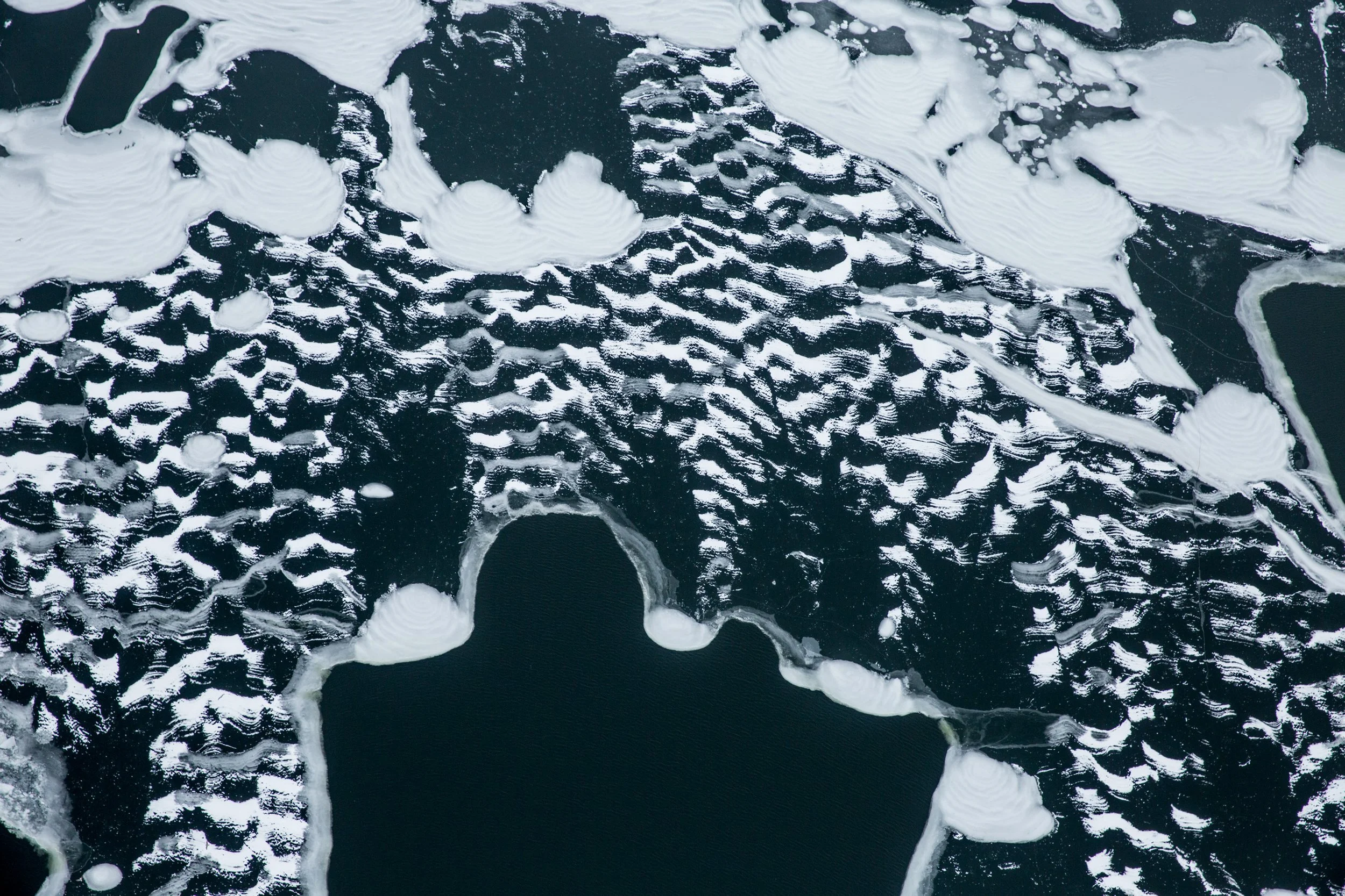 Before the plows and footprints break it up, the sheer expanse of fresh snow evokes the feeling of a blank canvas. Colors in the foreground become more prominent, even from far away or up above.