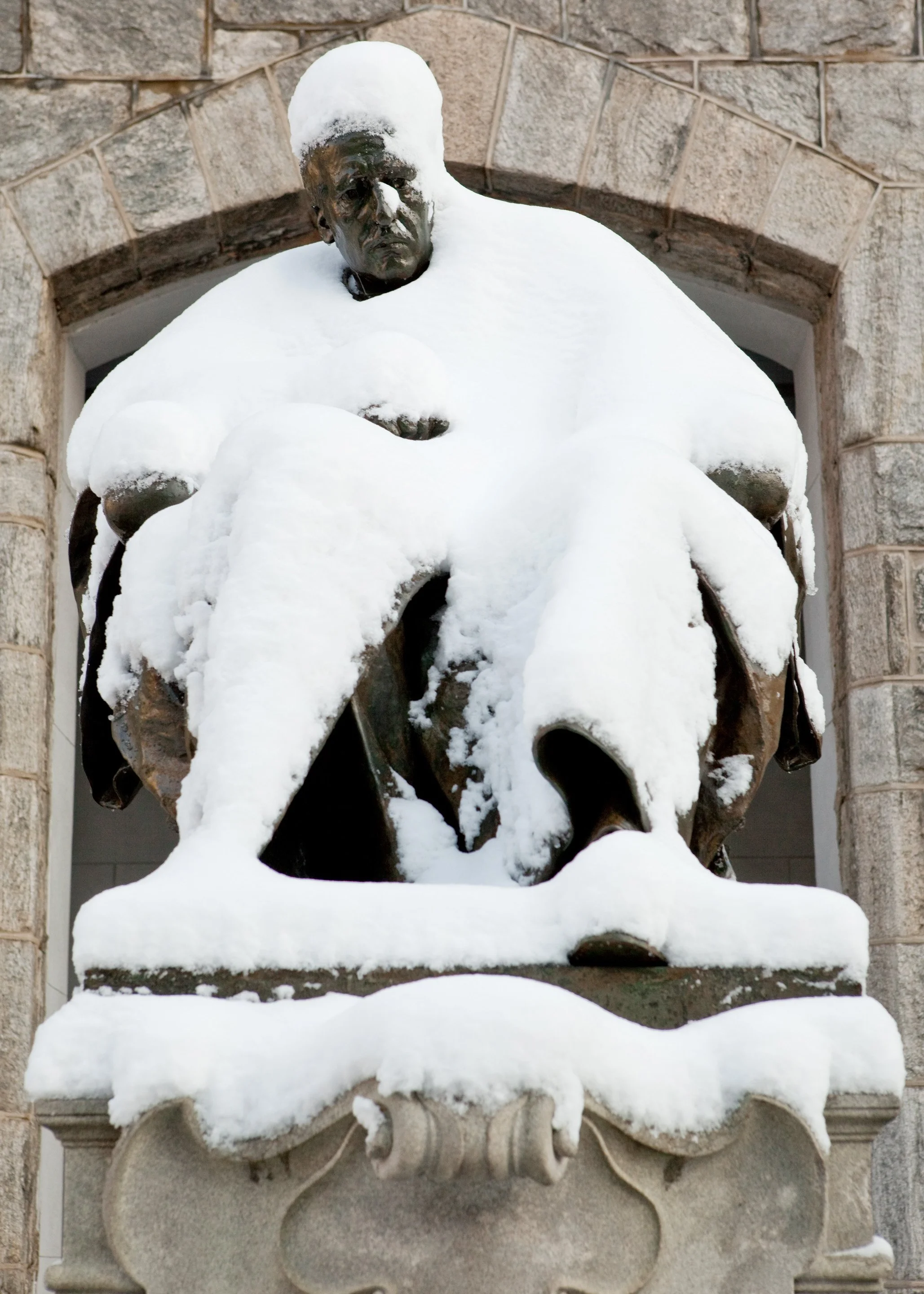No part of the Penn campus can escape the snow—not even this statue of former provost William Pepper.