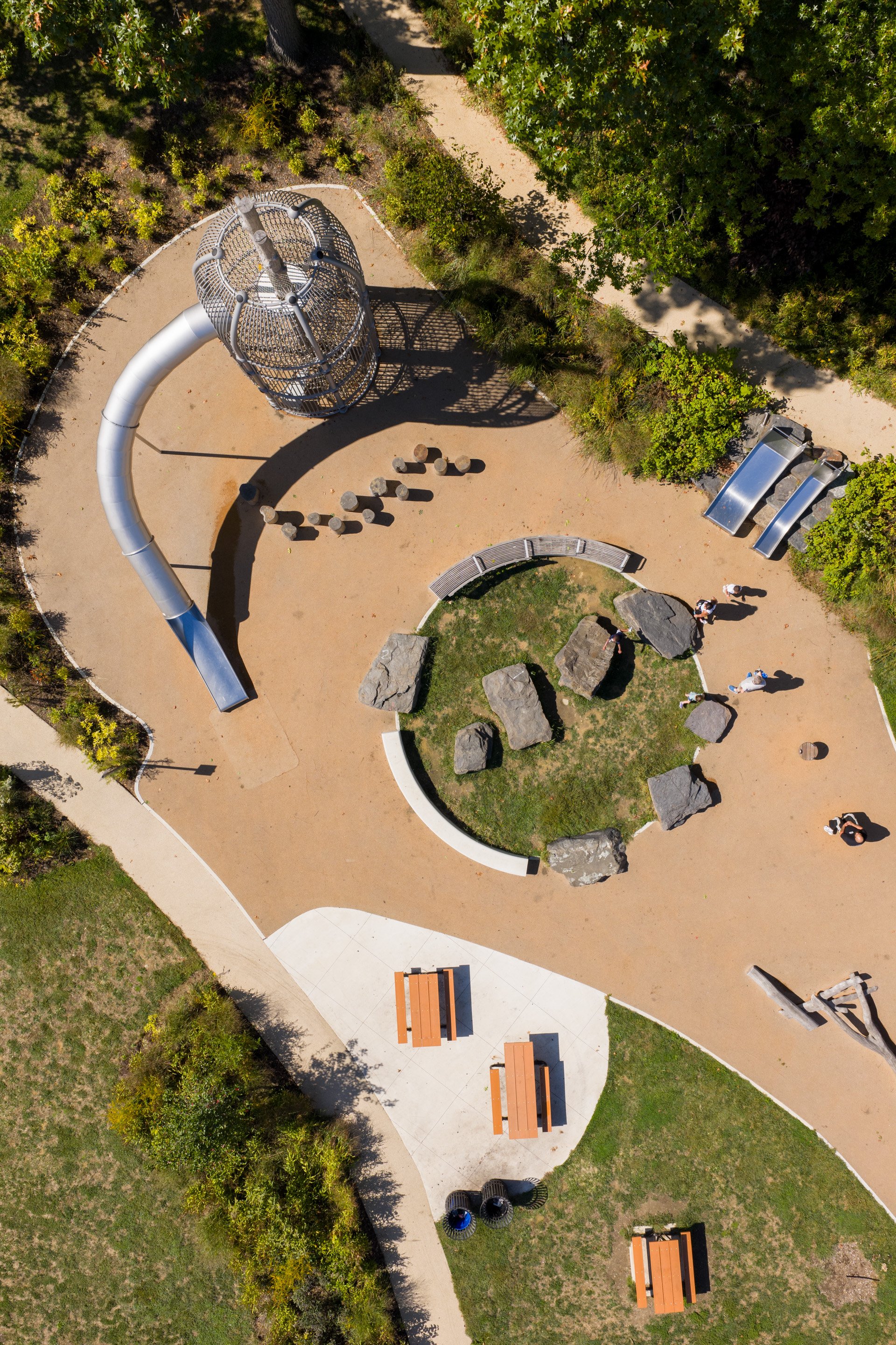 Going on location to determine the best light and composition was a fun way to test out my new drone, the DJI Mavic Pro 4. It has a telephoto lens that can shoot a tight view looking straight down, capturing aspects of the playgrounds that aren’t visible from a kid’s point of view.