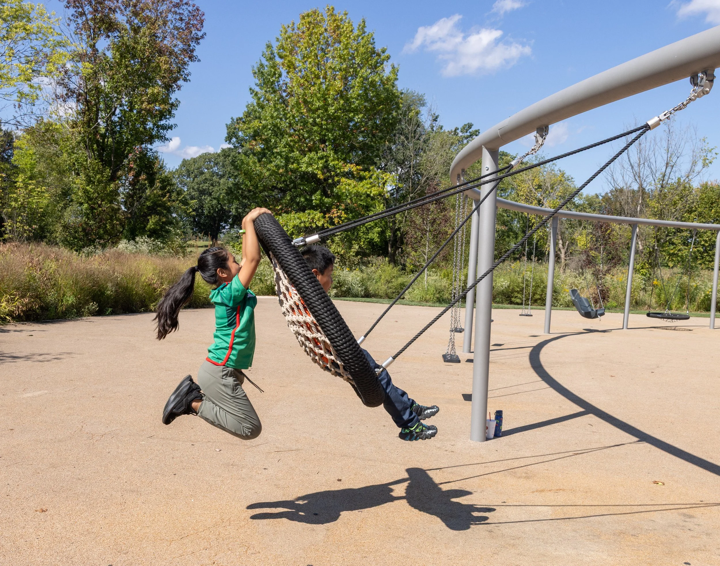 With so many different structures to try, pushing a swing can be just as fun as riding on it.