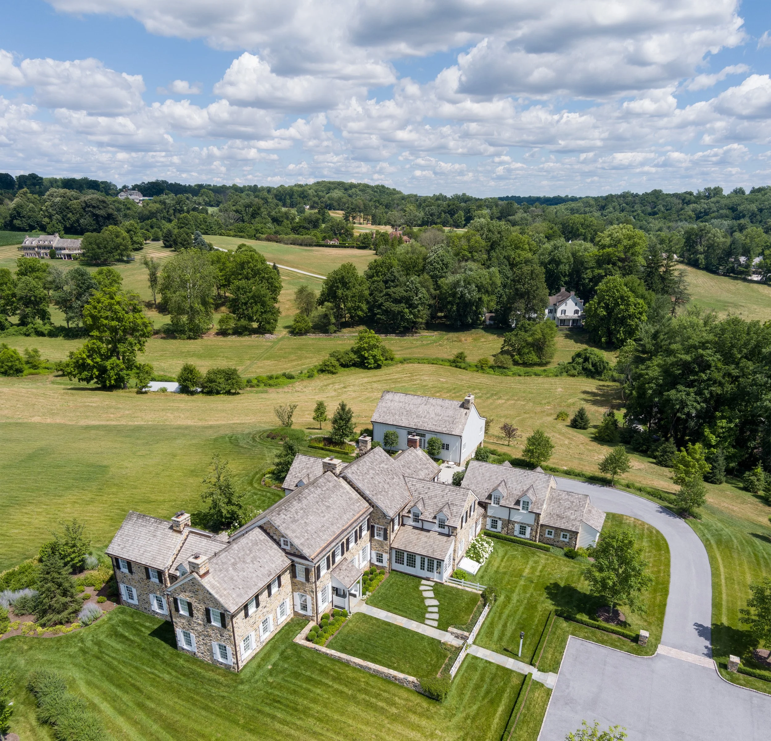 This sprawling house feels even more picturesque in the context of the beautiful rolling hills around it.