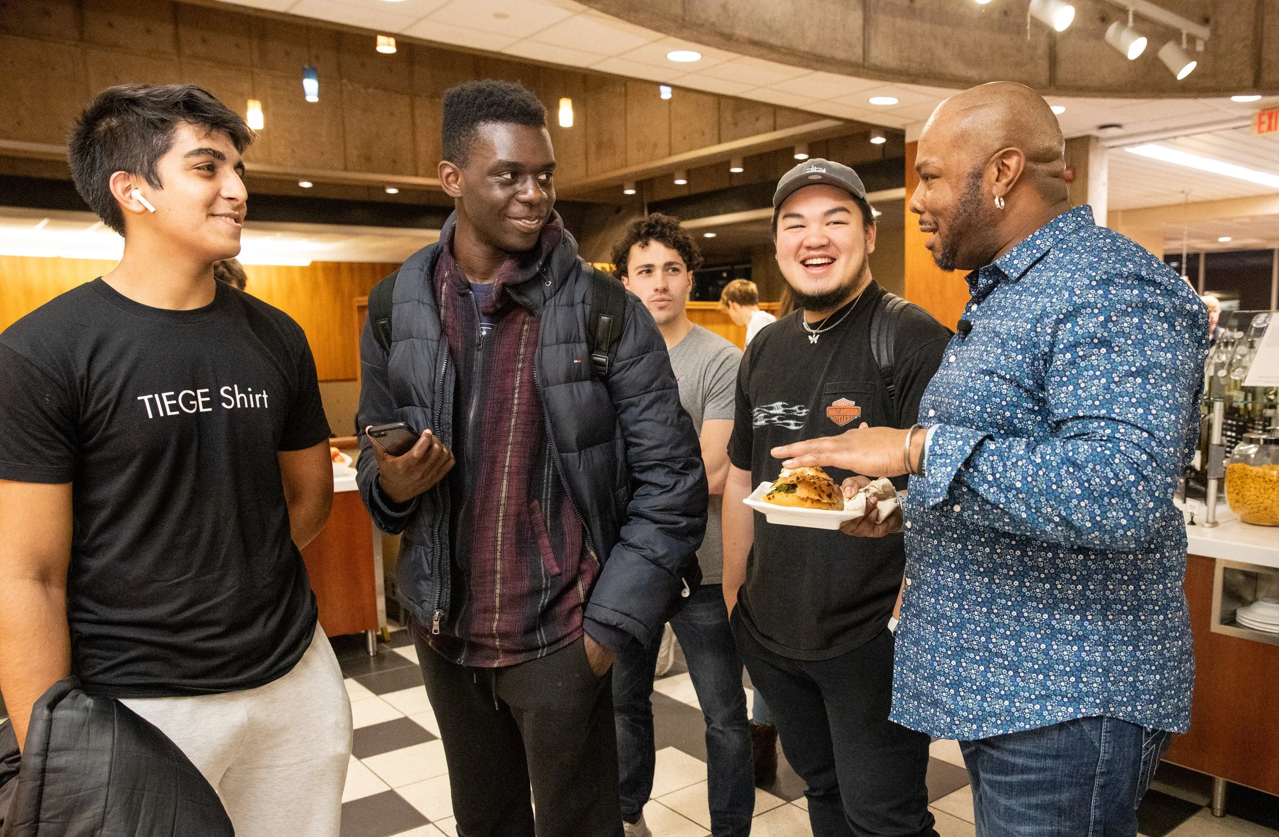 Aaron McCargo Jr., author of Simply Done, Well Done, poses with the Penn kitchen team.