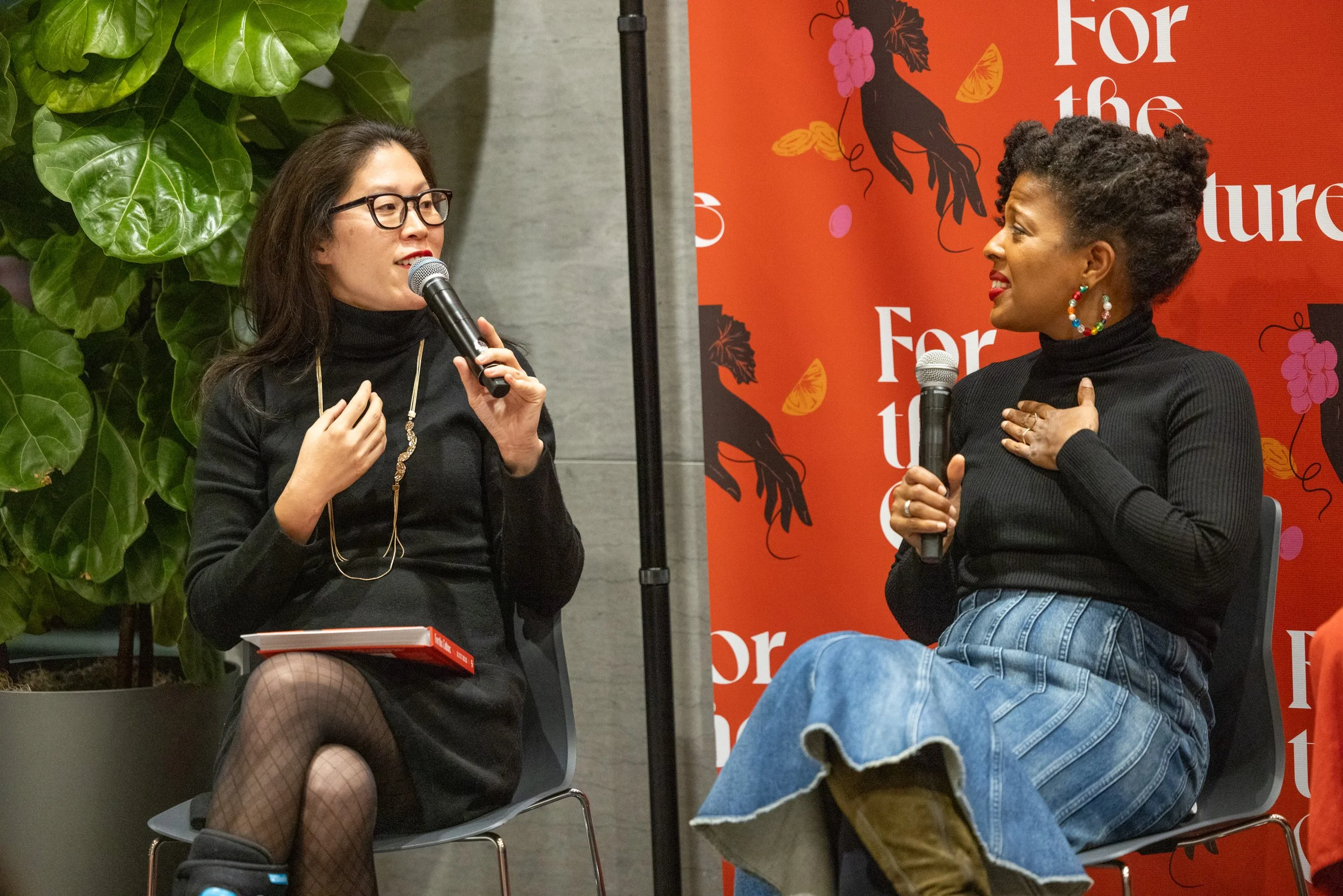 Clara Park (left), executive chef of Penn’s Quaker Kitchen, interviews chef Klancy Miller, author of the recently-released cooking anthology, For the Culture: Phenomenal Black Women and Femmes in Food.