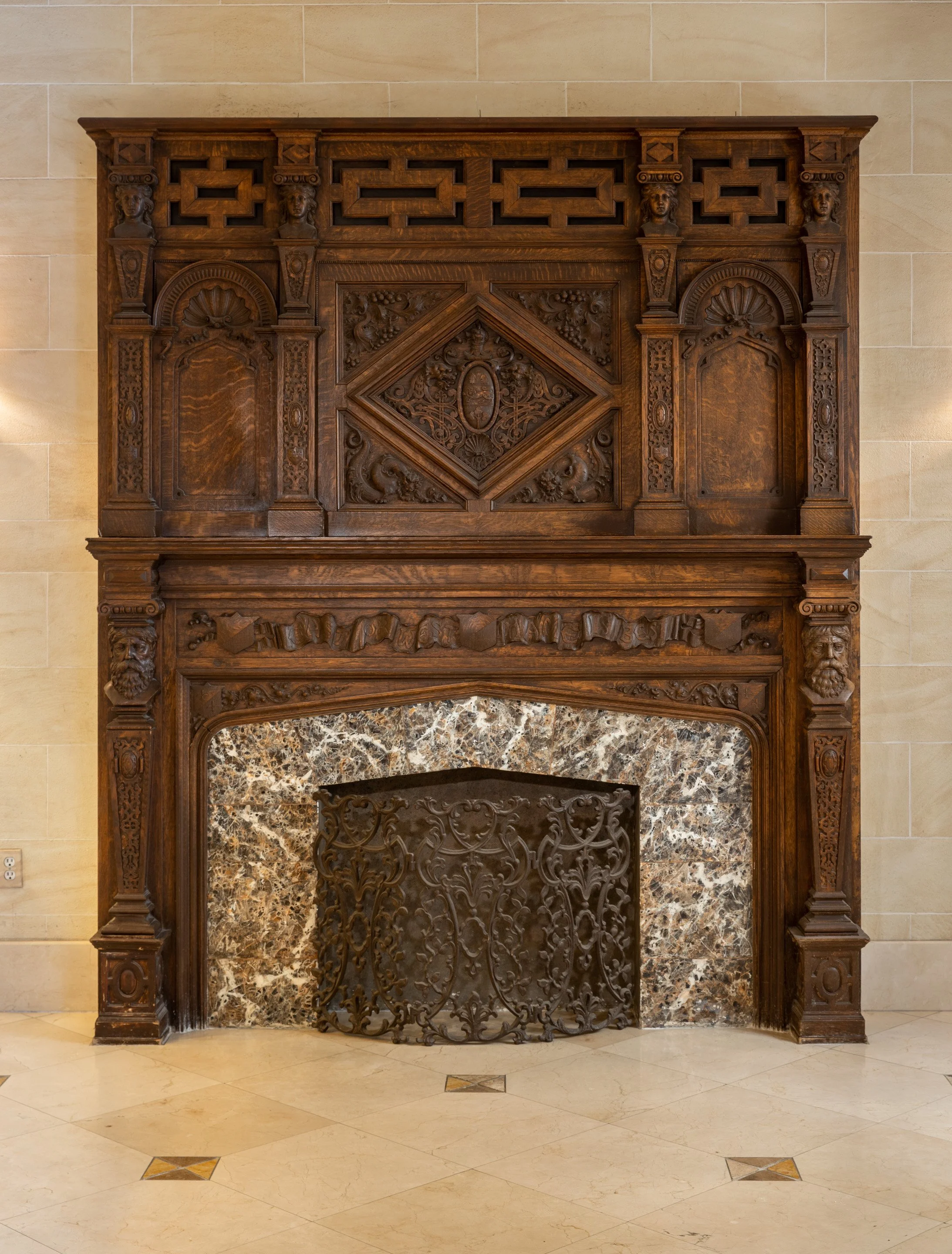 How many apartment buildings have a fireplace like this in the lobby? 222 Rittenhouse Square does.