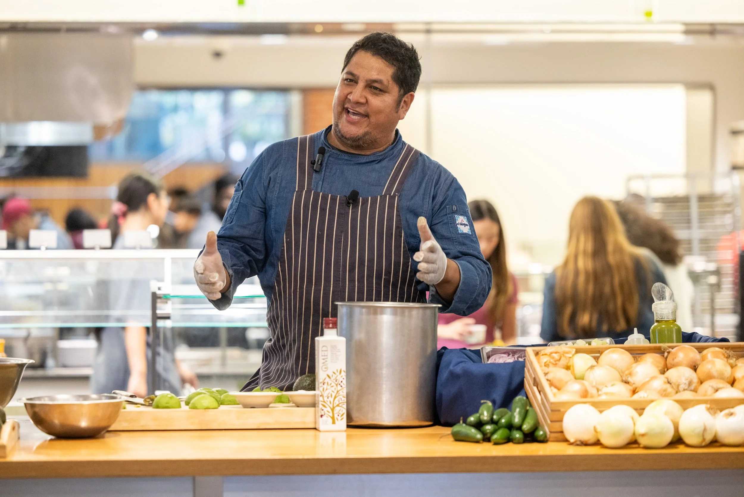 With the help of Penn’s culinary staff, Carlos prepared a few of his favorite dishes from El Chingon’s menu. Carlos treated the audience to a demonstration of his hand-mixed vegan aguachile as he recounted the experiences that led to him opening El Chingon in 2020.