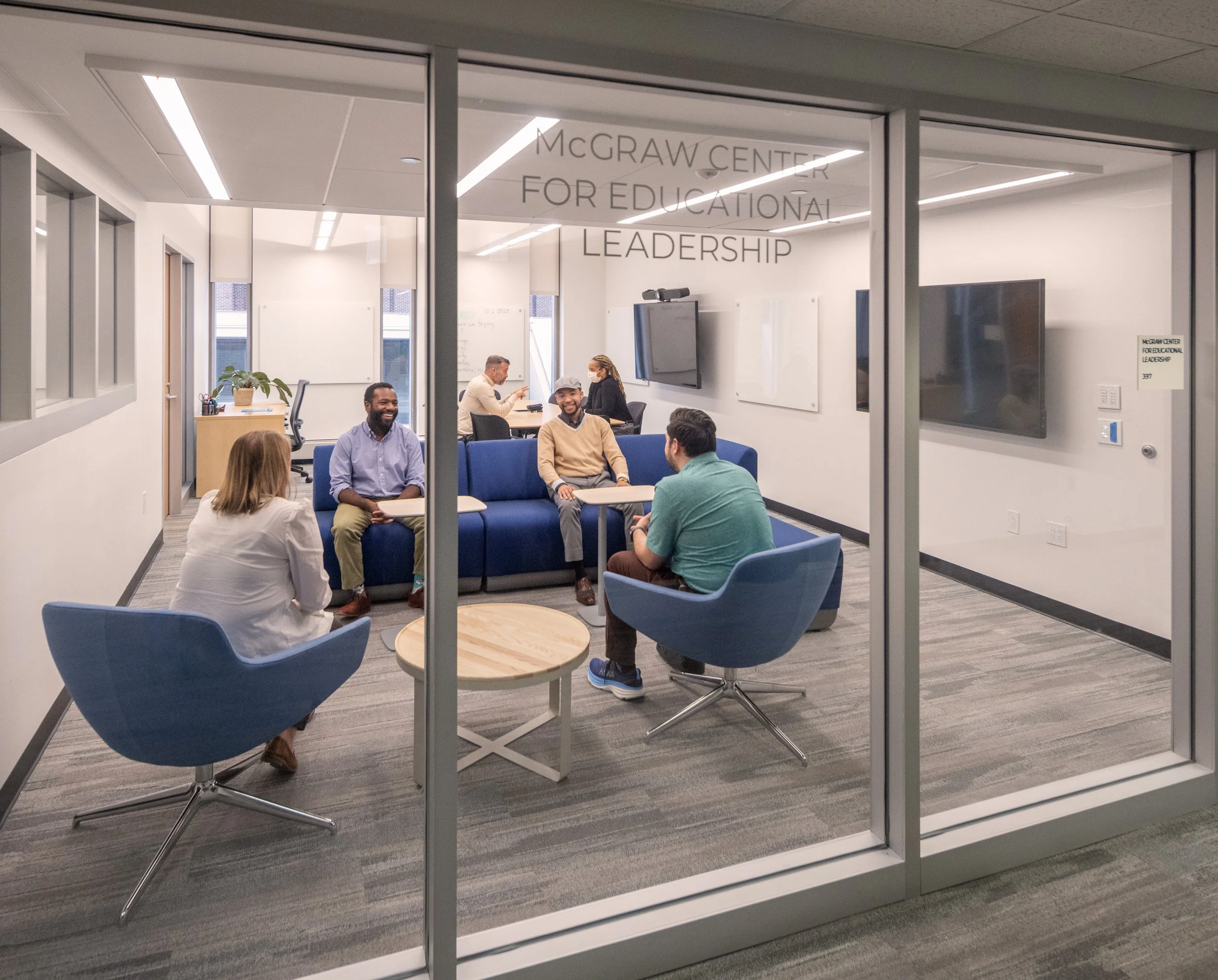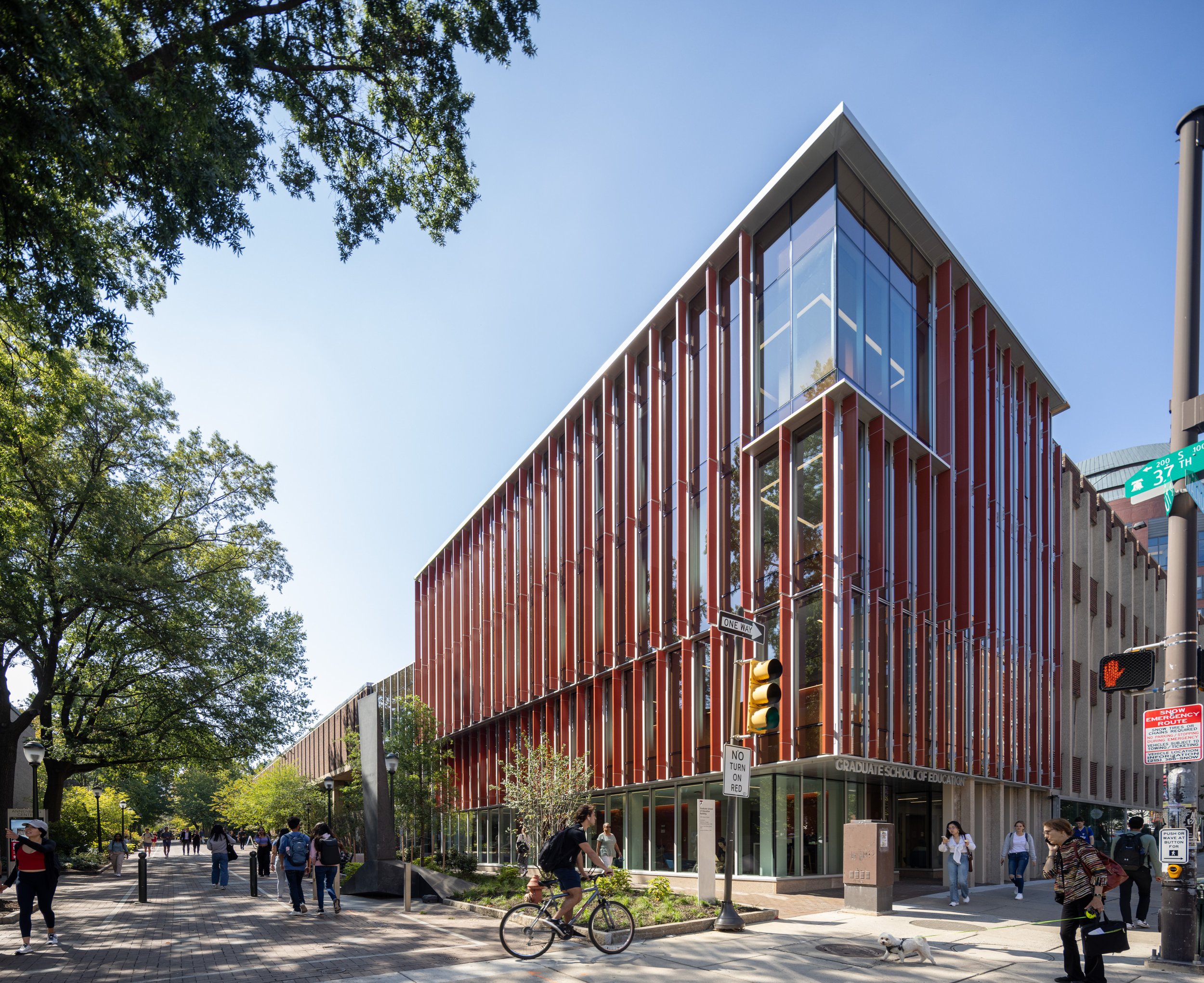 The Graduate School of Education (GSE) at the University of Pennsylvania (Penn) renovated its facilities by integrating expanded spaces with the original 1960s-era buildings. The renovation/addition connected existing structures, reconfigured interior spaces, and upgraded the façade with a more welcoming, outward-facing look.