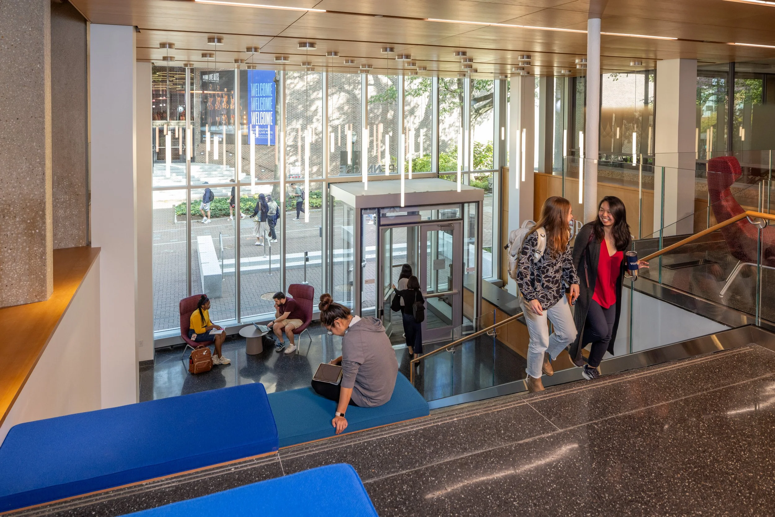 The new connection is both physical and metaphorical for the GSE’s mini-campus. It joins the original buildings and consolidates the school’s programs into one physical space to promote student collaboration. The welcoming façade and multi-use study/lounge spaces encourage interaction between students and with the larger surrounding community.