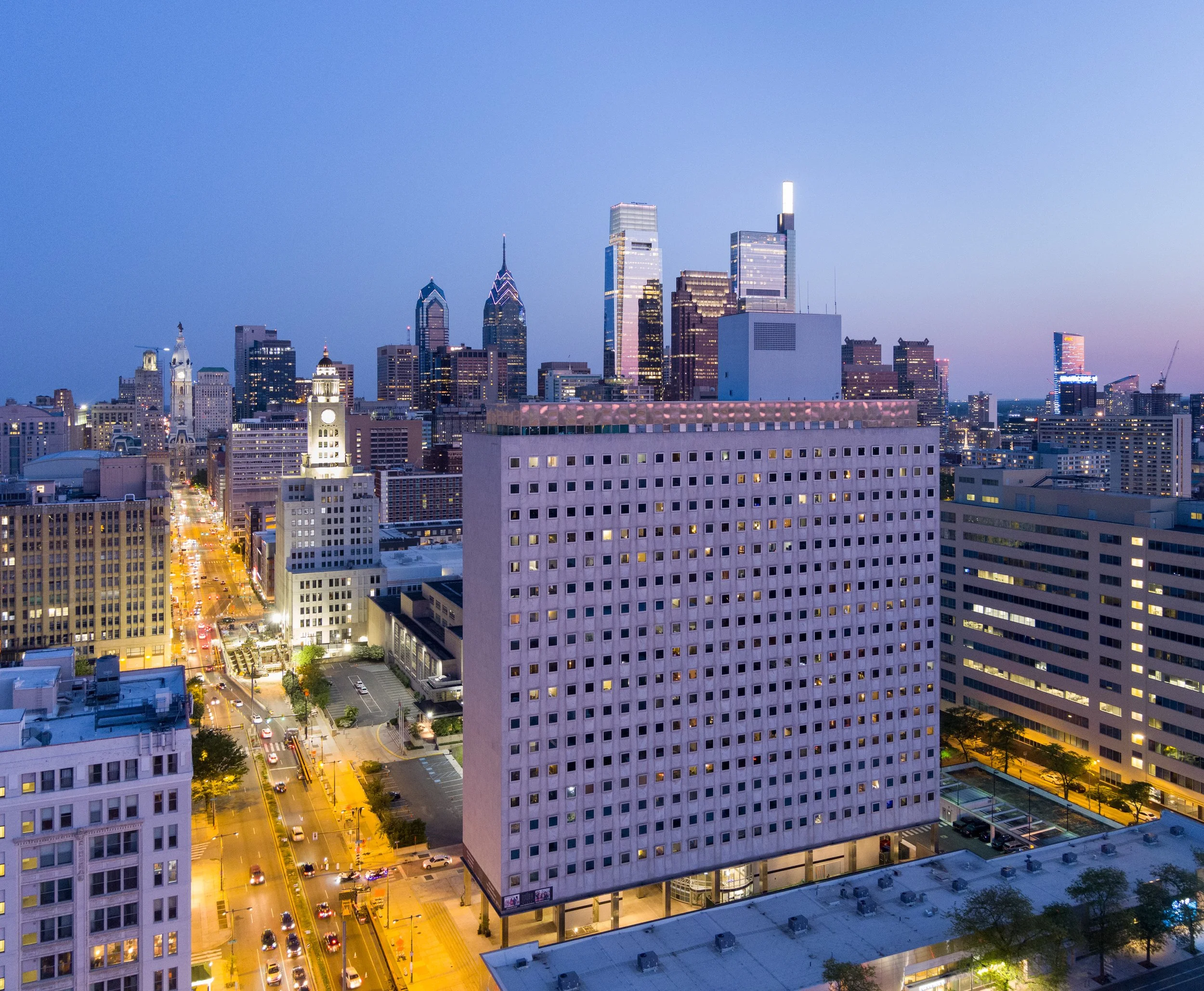 Shooting at twilight really emphasizes the activity and bustle of the Canvas Valley Forge at the King of Prussia Town Center.